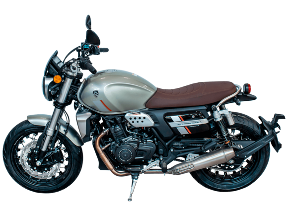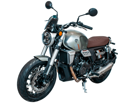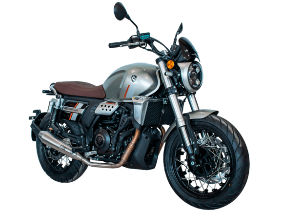 CYCLONE RE3 Scrambler (SR400-A) – универсальный мотоцикл, объединяющий в себе черты городского мотоцикла и эндуро. Управляя им, можно бросить вызов и городским пробкам, и скоростным автострадам, и всевозможному лёгкому бездорожью. Его дизайн отдаёт дань уважения каферейсерской тематике.Двухцилиндровый четырёхтактный двигатель объёмом 401 см3 выдаёт 43 л.с. на 9500 об/мин. Инжекторный впрыск топлива с инжектором BOSCH увеличивает топливную экономичность, а также позволяет добиться высокой приёмистости и неприхотливости агрегата. Жидкостная система охлаждения не допустит перегрева двигателя даже при самом агрессивном вождении. На мотоцикл установлена 6-ступенчатая механическая коробка передач.Максимальная скорость мотоцикла составляет 140 км/ч.Мотоцикл оснащён классическими спицованными колёсами диаметром 17 и 19 дюймов и имеет достаточно большой дорожный просвет – 22 см. С неровностями дороги эффективно справляются телескопическая вилка перевёрнутого типа спереди и маятник с двумя амортизаторами сзади. Ход передней подвески составляет 130 мм, задней – 81 мм. Оба компонента подвески являются регулируемыми. Эффективное и безопасное замедление с любых скоростей обеспечивают гидравлические дисковые тормоза с ABS спереди и сзади.Клиренс мотоцикла составляет 220 мм. Объём топливного бака – 19 л. Снаряжённая масса – 200 кг.На данной модели штатно установлены дуги безопасности, а также имеется бортовой компьютер с цветным дисплеем, USB-порт и подсветка пультов.RE3 Scrambler сочетает в себе отличные технические характеристики, комфорт и надёжность, что позволяет вам ощутить настоящую свободу на любой дороге с любым покрытием.