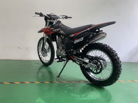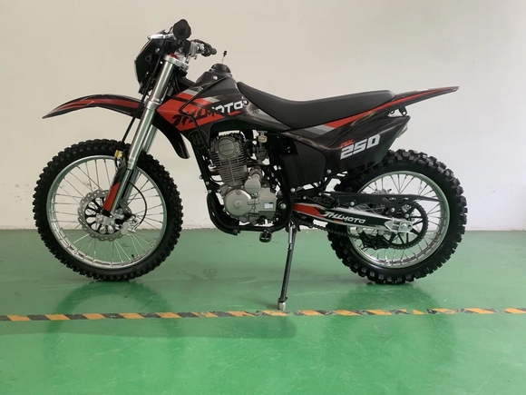 JHLMOTO 250 – лучший спортивный мотоцикл для новичка. Конструктивные особенности байка подходят по параметрам для первопроходца в эндуро. Об этом далее.Почему MX300 подходит новичкамКак уже упоминалось, байк относится к классу эндуро. В свою очередь, эндуро тепло относится к новичкам и располагает комфортными для них конфигурациями. Например, MX300:Содержит вакуумный карбюратор, отличающийся стабильным запуском. То, что нужно в спорте, где важна не скорость, а проходимость.Мягкая подвеска, впитывающая энергию при жестких приземлениях. Сглаживает неровности под колесами, что облегчает управление байком.Широкое сидение. Отличное решение как для “покатушек” с друзьями в лесу, так и для поездки по асфальтовым дорогам.Отсутствие зависимости от электроники. Это не электро мотоцикл. На байке нет ни приборной панели, ни поворотников, ни других бесполезных для него механизмов. Но есть электростартер.Качественные рукоятки руля, что большое достоинство для мотоцикла с такой низкой ценой.Подходит для человека со средней комплекцией тела. Крупному человеку на нем также будет комфортно.Также, как и любой эндуро, мотоцикл имеет спереди фару. Поскольку эндуро байкам разрешено ездить по асфальтовым дорогам, свет будет полезным инструментом. Мало того, есть и любители “поэндурить” вечером-ночью, для них освещение будет особенно ценно.
