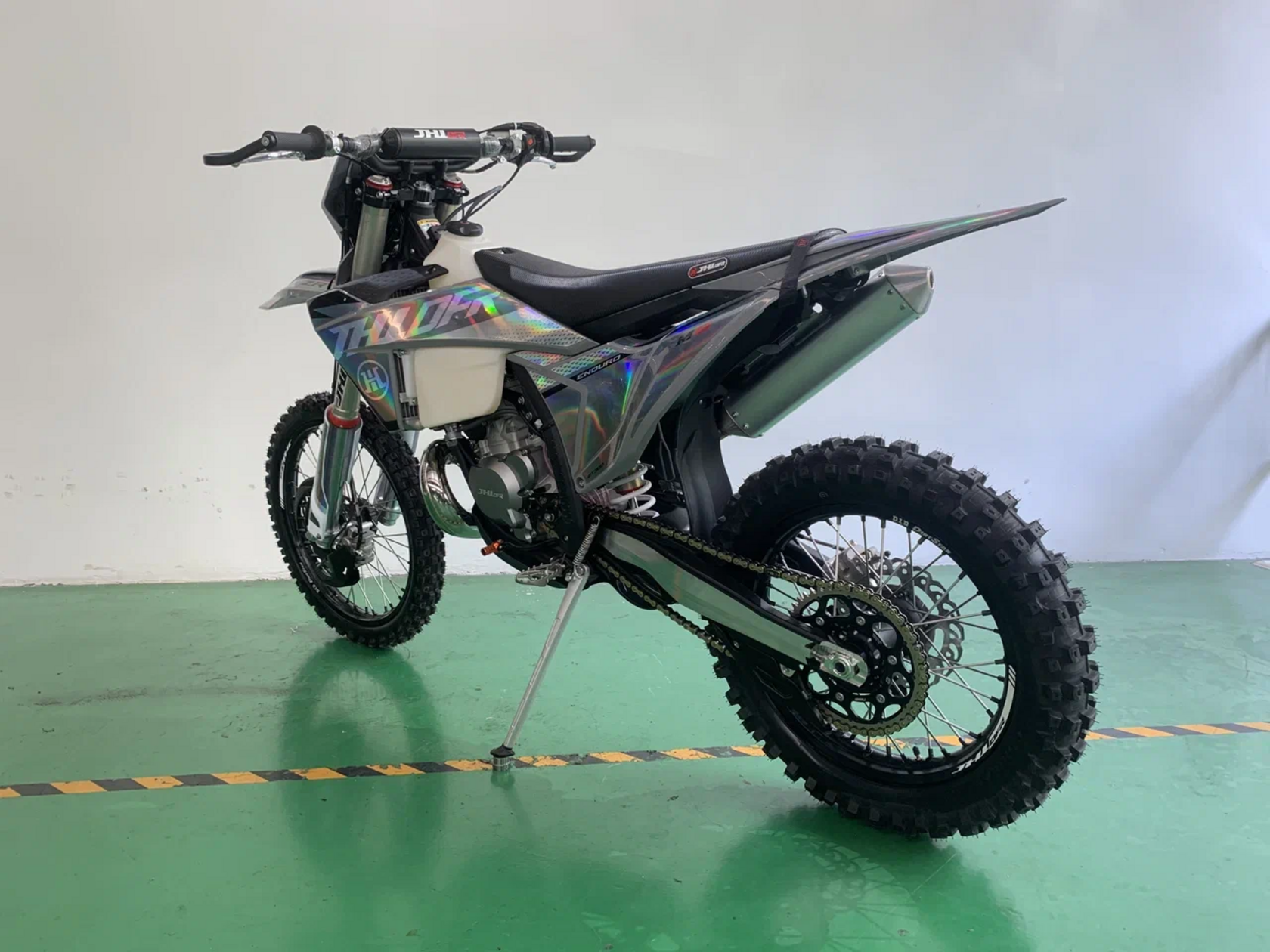 Мотоцикл JHL M6 — это современный и универсальный внедорожный мотоцикл, который сочетает в себе мощь, надежность и стильный дизайн. Он создан для любителей активного отдыха, экстремальных поездок по бездорожью и тех, кто ценит свободу передвижения. JHL M6 станет отличным выбором как для начинающих, так и для опытных райдеров, которые ищут качественный и доступный мотоцикл для покорения сложных трасс.Основные характеристики:Двигатель: Мощный 2-тактный одноцилиндровый двигатель объемом 300 куб. см с воздушным охлаждением. Он обеспечивает стабильную работу в любых условиях и достаточную мощность для преодоления сложных участков.Трансмиссия: 5-ступенчатая механическая коробка передач, которая позволяет легко управлять мотоциклом как на бездорожье, так и на ровных трассах.Подвеска: Длинноходная передняя вилка и задний моноамортизатор обеспечивают комфорт и устойчивость на неровных поверхностях, поглощая удары и вибрации.Тормоза: Дисковые тормоза на обоих колесах гарантируют надежное и эффективное торможение даже в сложных условиях.Колеса: Прочные спицованные колеса с внедорожными покрышками обеспечивают отличное сцепление с грунтом, песком, грязью и другими типами поверхностей.Дизайн: Агрессивный и современный внешний вид с защитными элементами, такими как дуги, пластиковые крылья и прочная рама, подчеркивает спортивный характер мотоцикла.Вес: Легкая конструкция (около 120-130 кг) делает мотоцикл маневренным и простым в управлении.:Идеален для езды по бездорожью, лесам, горам и другим сложным ландшафтам.Простота в обслуживании благодаря надежной конструкции и доступным запчастям.Универсальность: подходит как для активного отдыха, так и для тренировок или соревнований.JHL M6 — это отличный выбор для тех, кто ищет надежный и недорогой внедорожный мотоцикл. Он подойдет как для новичков, так и для опытных райдеров, которые хотят покорять бездорожье, участвовать в мотокроссах или просто наслаждаться активным отдыхом на природе.