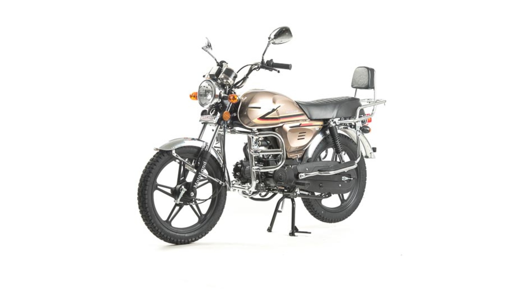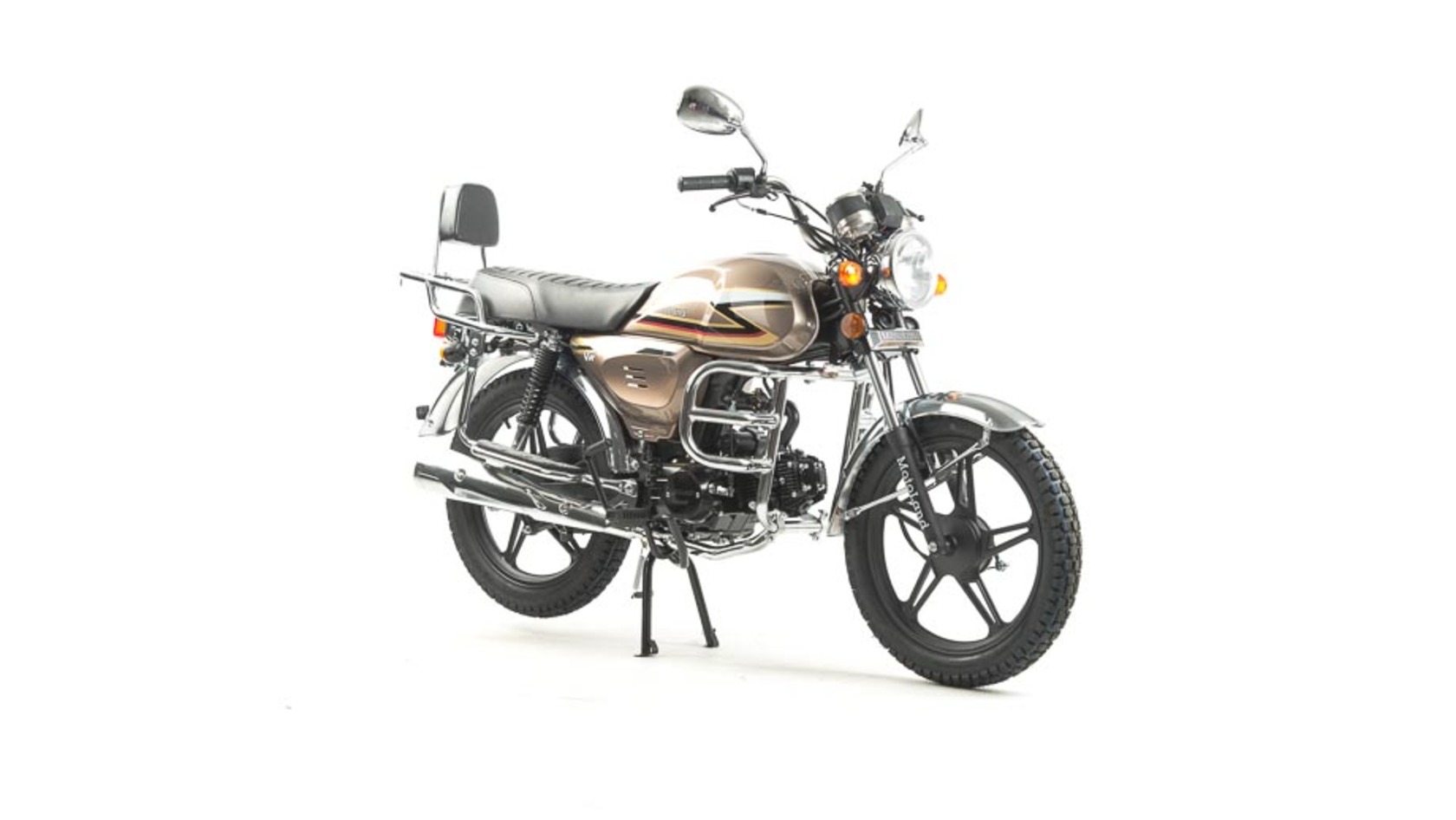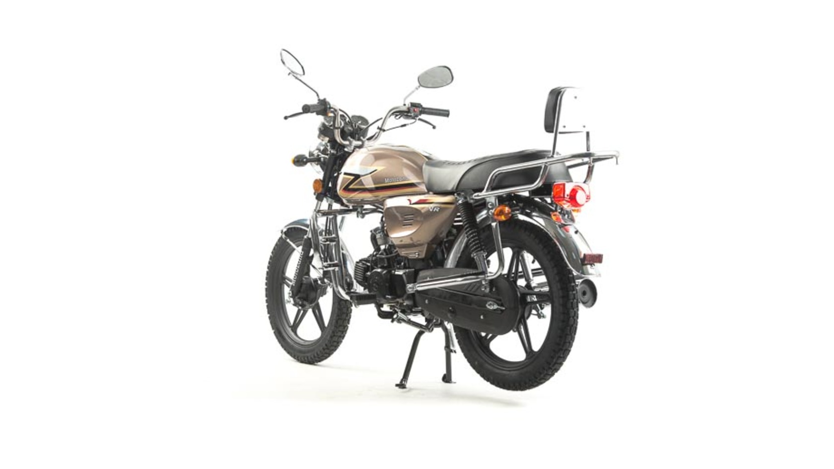 Комплектация Барабанные тормоза установлены на переднем и заднем колесе. Багажник, зеркала заднего вида, центральная и боковая подножки.