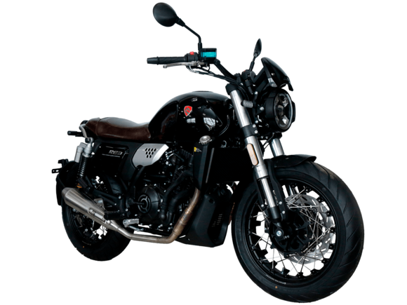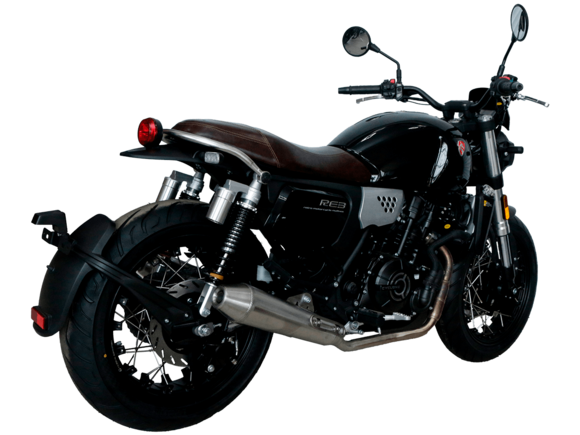 CYCLONE RE3 (SR400) – классик, в котором подчёркнутая простота объединяется с современными технологиями.Двухцилиндровый четырёхтактный двигатель объёмом 401 см3 выдаёт 43 л.с. на 9500 об/мин. Максимальный крутящий момент достигается на 8000 об/мин и составляет 34 Н·м. Инжекторный впрыск топлива с инжектором BOSCH увеличивает топливную экономичность, а также позволяет добиться высокой приёмистости и неприхотливости агрегата. Жидкостная система охлаждения не допустит перегрева двигателя даже при самом агрессивном вождении. На мотоцикл установлена 6-ступенчатая механическая коробка передач.Максимальная скорость мотоцикла составляет 140 км/ч.RE3 оснащён классическими спицованными колёсами диаметром 17 дюймов. Колёса обуты в бескамерные покрышки TIMSUN. С неровностями дороги эффективно справляются регулируемая телескопическая вилка перевёрнутого типа спереди и маятник с двумя амортизаторами сзади. Ход передней подвески составляет 110 мм, задней – 81 мм. Эффективное и безопасное замедление с любых скоростей обеспечивают гидравлические дисковые тормоза с ABS спереди и сзади.Клиренс мотоцикла составляет 145 мм. Объём топливного бака – 19 л. Снаряжённая масса – 186 кг.Из дополнительного оборудования можно выделить USB-порт, подсветку пультов и датчики давления в шинах.Мотоцикл сочетает в себе отличные технические характеристики, комфорт и надёжность, что позволяет вам ощутить настоящую свободу на любой дороге.