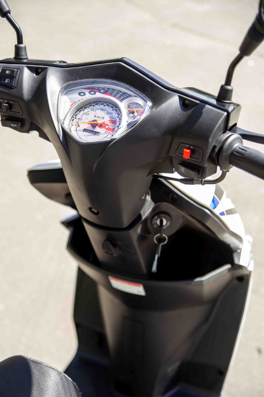 Комплектация За безопасность эксплуатации отвечают дисковый тормоз на переднем колесе и традиционный «барабан» в ступице заднего колеса. Небольшой багажник сзади предоставляет возможность установки кофра для перевозки или хранения мотошлема. Зеркала заднего вида, центральная подножка.