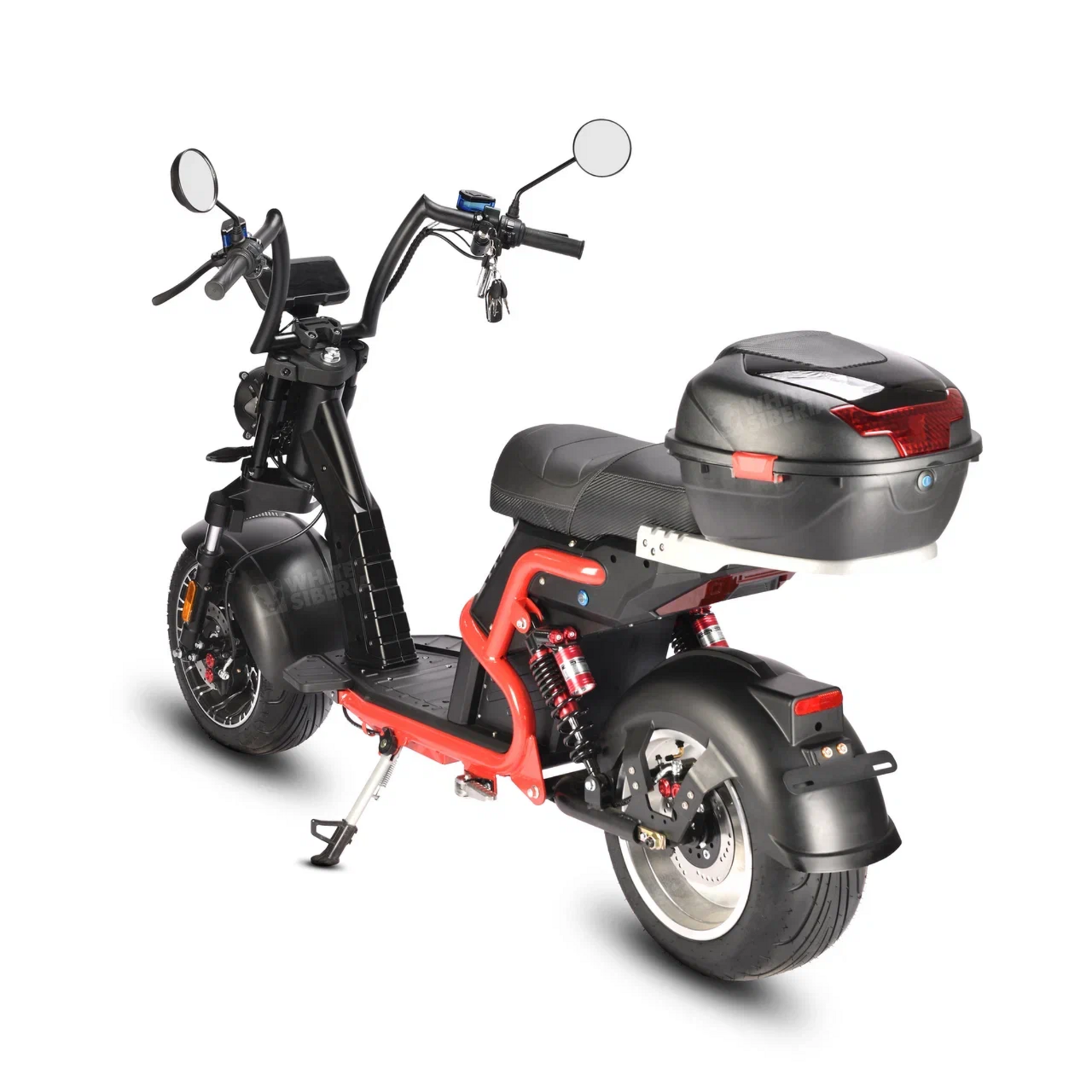 Электроскутер WHITE SIBERIA PRO BLACK EDITION 5000WЭлектрический скутер PRO BLACK EDITION 5000WНовинка из нашего каталога! Совершенно новый взгляд на дизайн CityCoco! Создан специально для дорог России! Очень шустрый, стильный, харизматичный!Чем отличается PRO BLACK EDITION 5000W от конкурентов и предыдущих моделей?• Настраиваемая подвеска, можно настроить под себя;