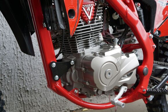 BSE Z11 – спортивный, мощный и легкий полноразмерный эндуро мотоцикл на стальной раме. Z11 оснащается эксклюзивным мотором TYAN TYX300 (BSE 4V300R) объёмом 300 куб см. с 4-х клапанной ГБЦ с воздушным охлаждением. Испытания на диностенде показали мощность в 27 лс. Особенно мотор богат крутящий моментом в низком и среднем диапазонах оборотов. Система подачи топлива – спортивный карбюратор PWK 34. Установлен настроенный прямоточный выхлоп. Рама мотоцикла стальная, специально усиленная инженерами BSE. Установлена 6 ступенчатая КПП с идеально подобранными передаточными числами. Z11 уже в заводской комплектации готов к покорению серьезного бездорожья благодаря наличию полностью регулируемой спортивной подвески MOJO Racing c большими ходами, рычагам задней прогрессии и “злой” внедорожной резине Carrystone. На мотоцикле установлены: усиленные легкосплавные колёсные диски MOJO, усиленная цепь, датчик моточасов, усиленные траверсы, складные СNC рычаги тормоза и сцепления, защита коллектора. Мощная гидравлическая тормозная система HSК Racing остановит байк в любых условиях. На BSE Z11 также можно с комфортном отправиться в продолжительное путешествие благодаря удобному сиденью, широкому спортивному рулю, наличию электростартера и топливному баку на 6.5 литра. C яркой LED фарой головного света можно кататься в ночное время. Почувствуй преимущества мощного 4-клапанного 300 кубового мотора, энергоемкой подвески и легкого полноразмерного шасси на любых трассах и направлениях!