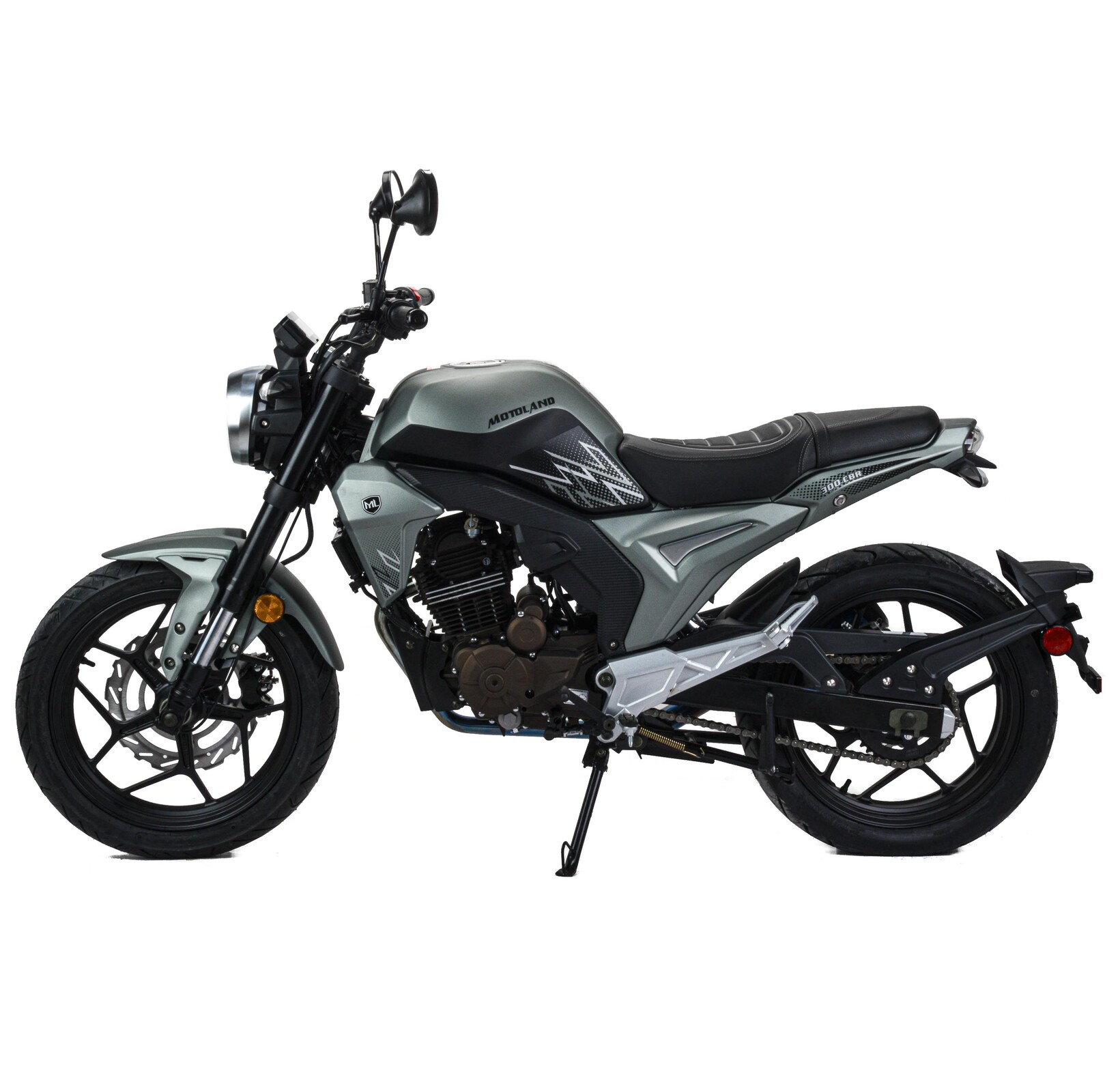 Мотоцикл CBR 300 Motoland - это обновлённая версия популярного сити-байка CBR 250, теперь на популярном 175FMM двигателе с воздушно-масляным охлаждением и балансирным валом.Главное преимущество мотоцикла – это его маневренность, высокая скорость и мобильность. Он отлично подойдет как для опытных байкеров, так и для начинающих водителей.Стальная рама. Расход топлива 3 л. на 100км.Литые алюминиевые диски 110/70-17 и 140/70-17.175й двигатель с масляным радиатором, мощность 25 л.с. Коробка передач - механическая, 5-ступенчатая,Зеркала, крепление под номер, подножки второго пассажира. Тормоза дисковые. Мягкое сиденье, обшивка из кож-замаФара, электростартер, замок зажигания, АКБ, поворотники, стоп-сигнал.Удобное двухэтажное кожаное сиденье и обновленная панель приборов с LCD дисплеем.Световое оборудование на экономичных и долговечных светодиодах.