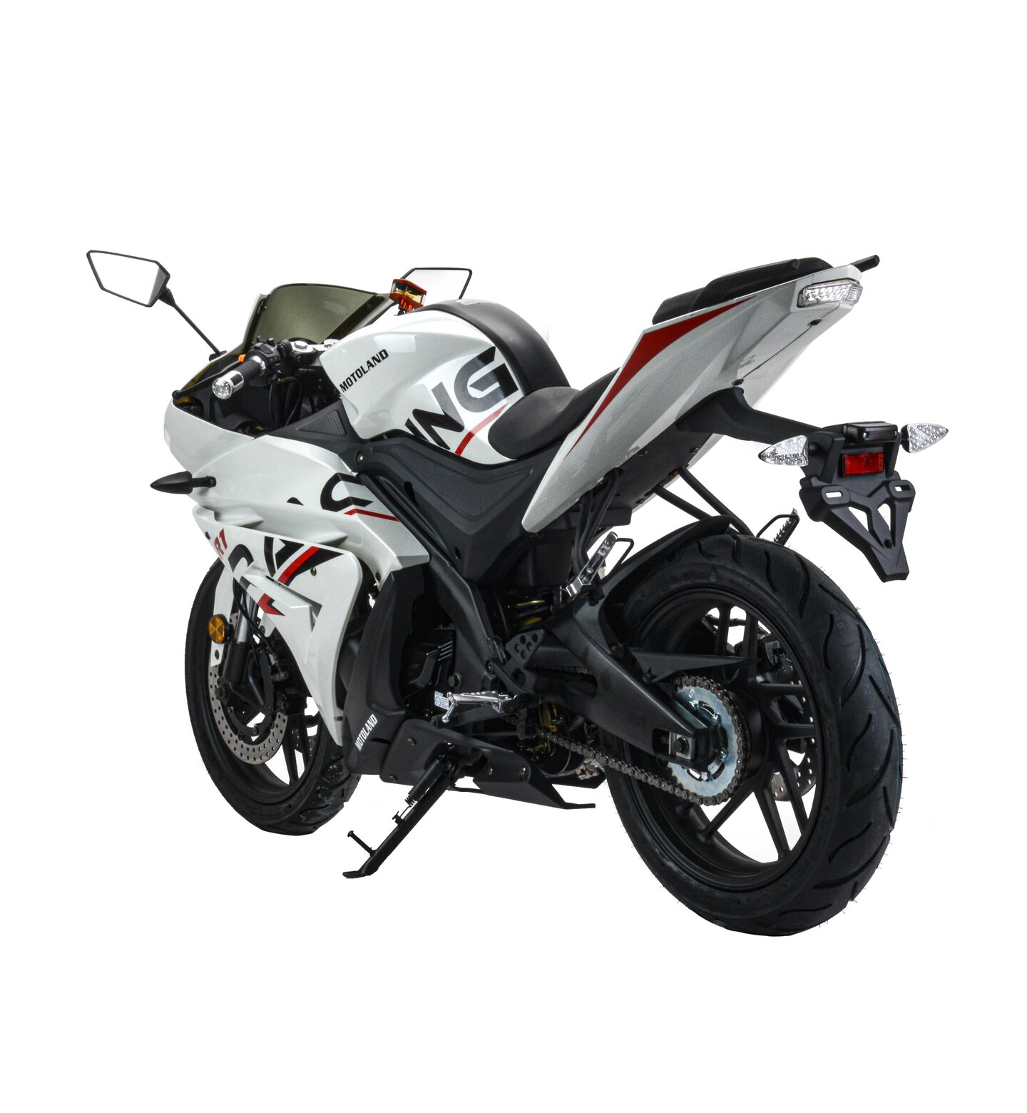 Motoland R1 300Это обновлённая версия популярного спорт-байка Motoland R1 250, с новым 175FMM двигателем.Главная особенность мотоцикла – его скорость и маневренность,которые дополняет воздушно-масляное охлаждение с балансирным валом, что позволяет выжать из двигателя максимум.Стальная рама. Расход топлива 3 л. на 100км.Литые алюминиевые обода 110/70-17 130/70-17.175й двигатель с масляным радиатором, мощность 25 л.с. Коробка передач - механическая, 6-ступенчатая.Зеркала, крепление под номер, подножки второго пассажира.Тормоза дисковые с 2-поршневыми суппортами. Мягкое сиденье, обшивка из кож-замаФара, электростартер, замок зажигания, АКБ, поворотники, стоп-сигнал.Удобное двухэтажное кожаное сиденье и обновленная панель приборов с LCD дисплеем и подсветкой.Световое оборудование – линзированное, на экономичных и долговечных светодиодах.