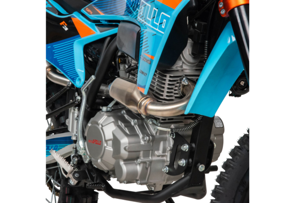 Moto Apollo F3 300 — это настоящий кроссовый мотоцикл, созданный для тех, кто ищет острых ощущений за пределами асфальта. Несмотря на маркировку двигателя 175FMM, его реальный рабочий объём составляет 300 см³, что обеспечивает впечатляющую мощность в 25 лошадиных сил. Такой двигатель с воздушным охлаждением и цепным приводом ГРМ отличается простотой конструкции, надёжностью и лёгкостью в обслуживании — идеальные качества для активной езды по пересечённой местности.