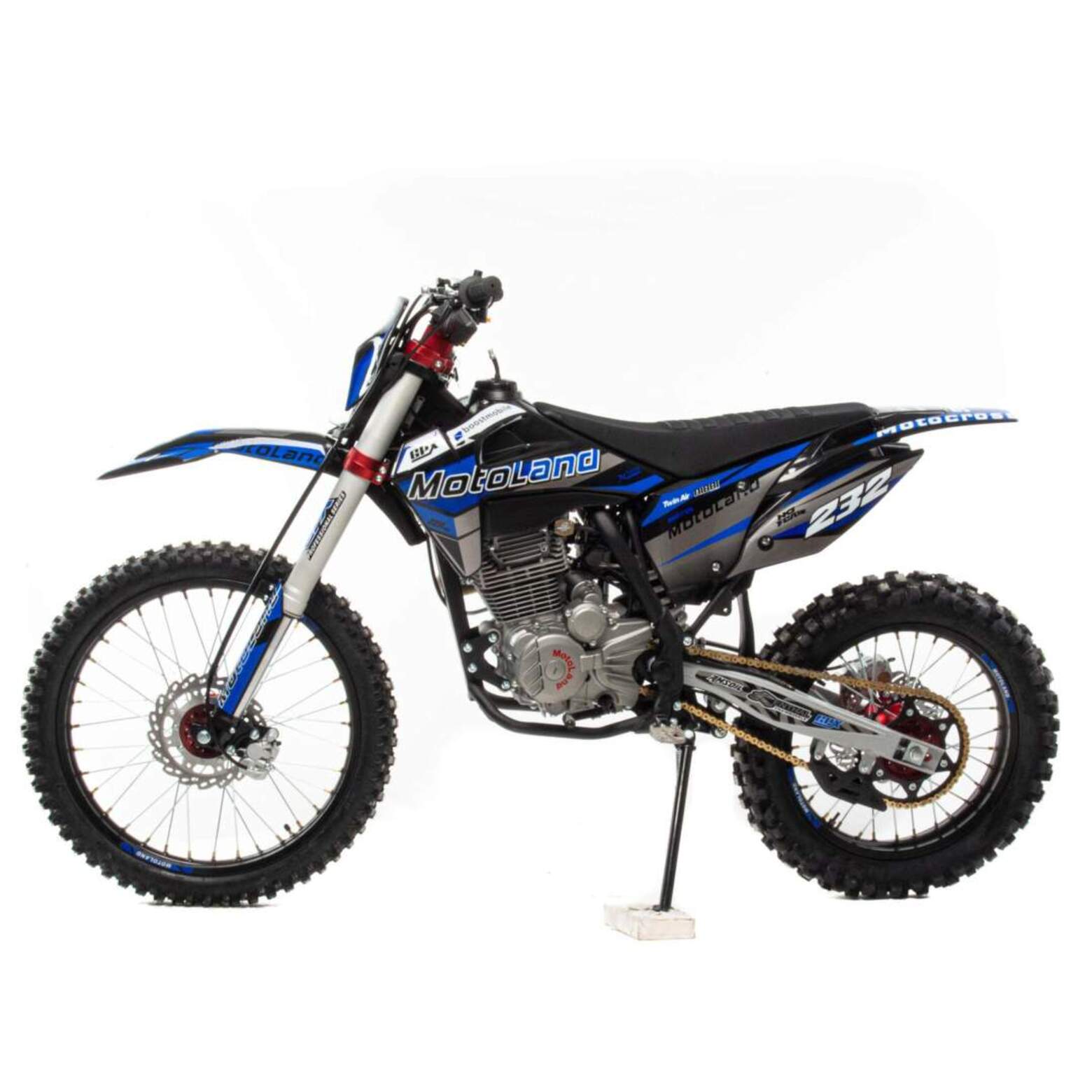 Встречайте новинку модель XT 300 HS, он стал еще мощнее, с увеличенным объемом до 300 см3 !!!Это средне размерный мотоцикл, с уменьшенным весом и достойной динамикой. Установлен мощный двигатель 175FMM 300 СС, мощностью 24 л.с, с увеличенным поршнем. Коробка передач механическая, пятиступенчатая. Карбюратор NIBBI N 30 оснащен резиновым патрубком, что обеспечивает хорошее снижение вибрации.Большой ход подвесок для комфортного передвижения по пересеченной местности, которые также позволяют ехать быстро и агрессивно. Надёжные литые траверсы и мощные амортизаторы GPX Professional, которые в свою очередь телескопические, перевёрнутого типа, оснащенные клапанами, для стравливания избыточного давления, что позволяет значительно повысить ресурс работы сальников. Мотоцикл больше предназначен для езды по пересеченной местности, чем для города, из-за профиля резины. Маневренный, удобный и прост в обслуживании, подходит мотолюбителям любого возраста и опыта вождения. Руль GPX переменного сечения. Сиденье выполнено с противоскользящим покрытием. Антибуксаторы на переднем и заднем колесе для драйва на пониженном давлении и защиты от смещения камеры.Выхлопная система GPX Racing. Быстрый доступ к воздушному фильтру для комфортного обслуживания. Обновленная тормозная система с надёжными двух поршневыми суппортами на переднем и заднем колесе. Ступицы CNC фрезерованные, алюминиевые. Кроссовая резина 80/100 "21 и 110/100 "18 с мощными грунтозацепами обеспечивают превосходное сцепление с грунтом и позволяют контролировать управляемость. Motoland XT 300 HS оснащён отличной галогеновой фарой головного света. Так же в комплекте есть щиток для номера, который ставится вместо фары при необходимости.Система зажигания электронная (CDI). Запуск двигателя комбинированный ножным кикстартером и электростартером