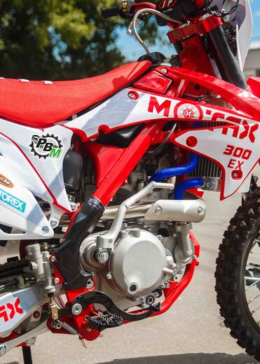 Мотоцикл MOTAX EX 300 позволит Вам испытать все грани удовольствия от экстремальной езды по бездорожью. Данная модель, предназначенная для гонок в стиле мотокросс и эндуро, является современным предложением от MOTAX и олицетворяет новейшие разработки инженерной мысли.Этот яркий, стильный и агрессивный мотоцикл с отличными эксплуатационными и ходовыми характеристиками найдет отклик в душе любителя скорости и драйва. В основе транспортного средства – надежная хромомолибденовая рама, готовая к высоким нагрузкам и резким маневрам. Она выдержит райдера весом до 150 кг.В основе ходовой части мотоцикла – классическая шестиступенчатая коробка передач (1-N-2-3-4-5-6), где N – нейтральная передача. Привод цепной. Качественная дисковая гидравлическая тормозная система гарантирует своевременное и четкое торможение.Колеса «обуты» в прочные покрышки с выраженным агрессивным рисунком протектора. Размер переднего колеса – 80/100-21", заднего – 100/90-18". У нас Вы можете купить Мотоцикл MOTAX EX 300 с бесплатной доставкой по РФ и гарантией до года. Также этот мотоцикл можно приобрести в рассрочку или в кредит.