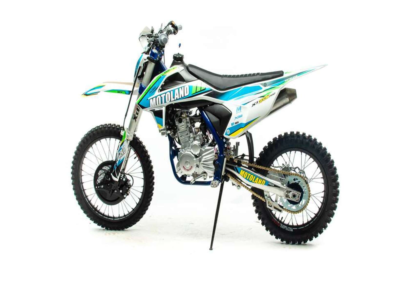 Мотоцикл Кросс Motoland X3 300W PRO (174MN-3) - yовинка сезона 2022 года Двигатель ZONGSHEN 174FMN-3 с водяным охлаждением, дополнительной защитой радиатора, кикстартером и электростартером, мощностью 26 лс.На двигателе установлен Карбюратор NIBBI n34 c ускорительным насосом.Данный мотоцикл оборудован передней подвеской GPX PERFORMRNCE SERSS с фрезерованными траверсами, полной регулировкой на сжатие и на отбой, центральный амортизатор так же регулируемый.Установлена новейшего образца LED оптика.Руль 22/28 переменного сечения “Fatbar” с защитой руля “PRO TAPER” ,противоскользящие грипсы и защитой рук.Колеса 21"/18' на резине с высоким грунтозацепом.Выхлопная система с резонатором из нержавеющей стали "Рowerbomb", который увеличивает мощность на низких оборотах.Для комфортного запуска холодного двигателя предусмотрен выносной флажок обогатителя.Алюминиевая CNC лапка п/п не задевает крышку картера при переключении.Усиленная цепь 520-H с защитой. Что касается тормозной системы , то на данной технике онавысокоэффективная, спереди установлен 2-х поршневой суппорт с защитой тормозного диска, сзади 1-поршневой суппорт
