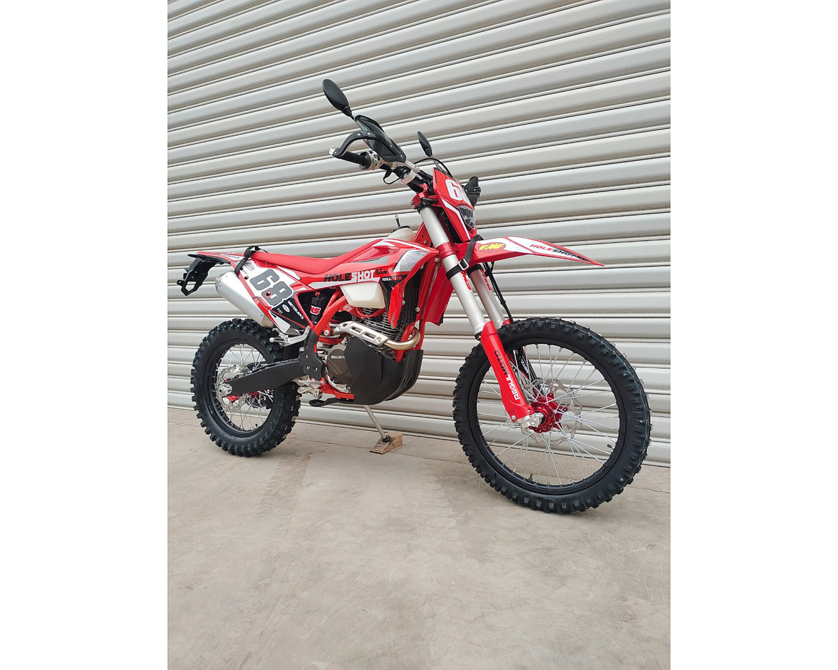 Regulmoto Holeshot Red Edition – новинка модельного ряда мототехники Regulmoto, байк двойного назначения с достаточно мощным 4-тактным двигателем воздушного охлаждения 4 клапана, который способен проявить себя как на дорогах с покрытием (у мотоцикла есть ПТС), так и на бездорожье.Отличительной особенностью модели стала комплектация мотоцикла двигателем Zongshen ZS172MN-5 4 клапана на цилиндр с ЦПГ увеличенного объема с коробкой на шесть передач – в бигборе установлен поршень диаметром 75 миллиметров. Такое решение позволило добиться большей отдачи мощности и крутящего момента в диапазоне низких оборотов, что немаловажно для внедорожной мототехники. А наличие балансирного вала сводит к минимуму уровень вибраций, делая эксплуатацию мотоцикла на дорогах общего пользования максимально комфортной.В основу конструкции мотоцикла легла рама из хромолевой стали KTM модельного ряда 2022 года. Подвеска байка готова отрабатывать широкий спектр задач: спереди в траверсах перевернутой вилки стоят регулируемые телескопические амортизаторы (аналог SHOWA) длиной 940 мм и диаметром штока 47 мм. Задняя часть подвески собрана на базе алюминиевого маятника с системой рычагов прогрессии и регулируемого моноамортизатора длиной 480 мм.Колеса диаметром 21/18 дюймов собраны на прочных и легких ободьях из алюминиевого сплава марки 7116 и фрезерованных алюминиевых ступицах. В стоке стоит внедорожная резина с увеличенными грунтозацепами «Regulmoto» аналог Mitas 754 размерности 80/100-21 и 120/90-18. Для комфортного передвижения по асфальтированным дорогам понадобится комплект мотардовых покрышек или колеса с такой резиной в сборе.